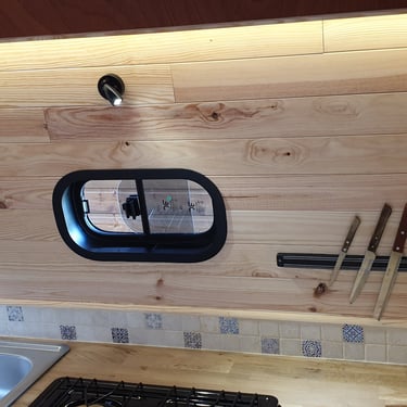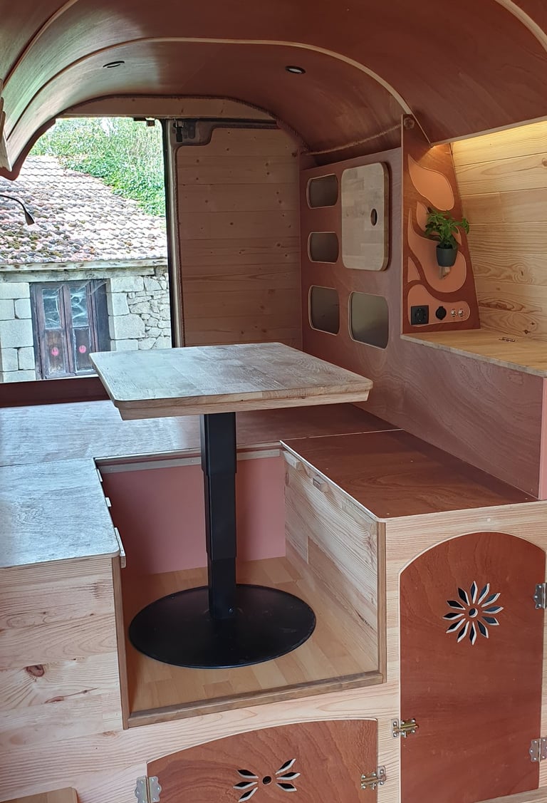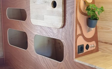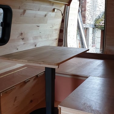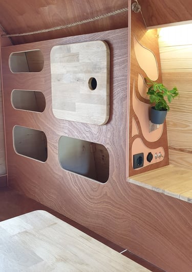 Le propriétaire de ce camion a opté pour un modèle spacieux dans le but d'y résider toute l'année. L'objectif était d'avoir un espace de rangement généreux sans pour autant sacrifier la sensation d'espace avec une surcharge de mobilier ou de cloisonnement.