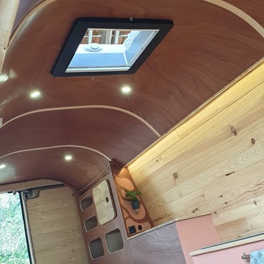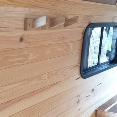 Un habillage bois avec du contreplaqué pour le toit et du lambris pour les parois