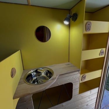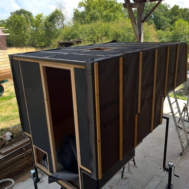 L’intérieur a ensuite été habillé en contreplaqué, tandis que l’extérieur a reçu un bardage en douglas, offrant à la fois protection, durabilité et une esthétique chaleureuse.