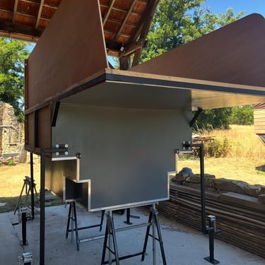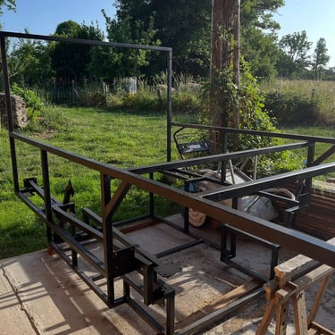 La conception a débuté par la réalisation d’une armature métallique sur mesure, pensée pour garantir une excellente rigidité et une bonne résistance aux contraintes liées aux déplacements et aux années d’utilisation.