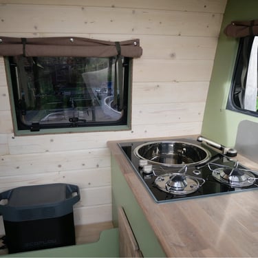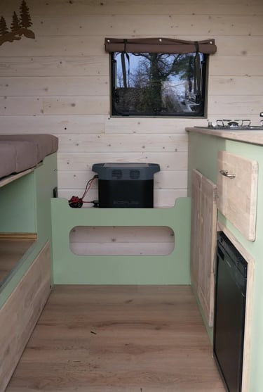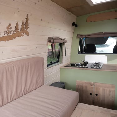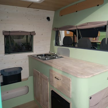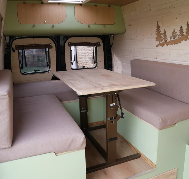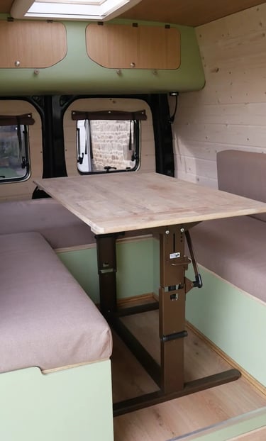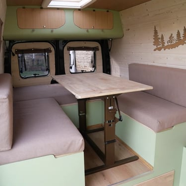 Cet aménagement s'inspire largement de celui du Sprinter précédent, tout en intégrant des options supplémentaires spécifiquement choisies par le propriétaire, telles qu’un réfrigérateur et un système anti-vol. Grâce à ses quatre fenêtres projetables et ses deux lanterneaux, ce véhicule offre une luminosité accrue et une agréable sensation d’ouverture.