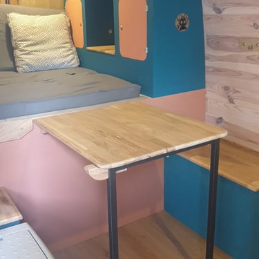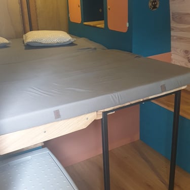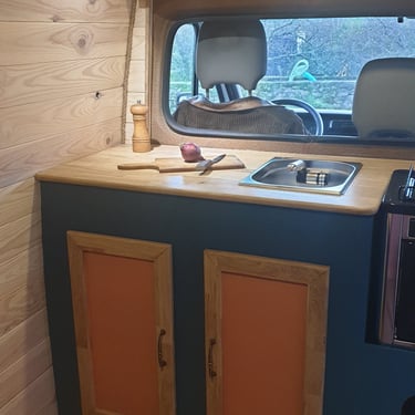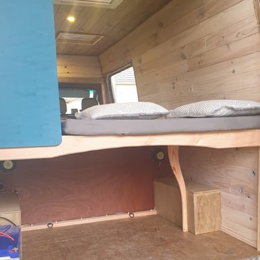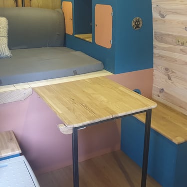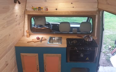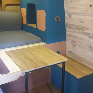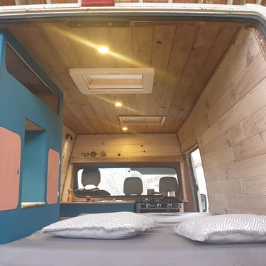 Ce fourgon personnalisé répond aux besoins de ma cliente, combinant praticité et confort pour ses déplacements sur les marchés et ses moments de vie nomade.