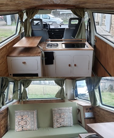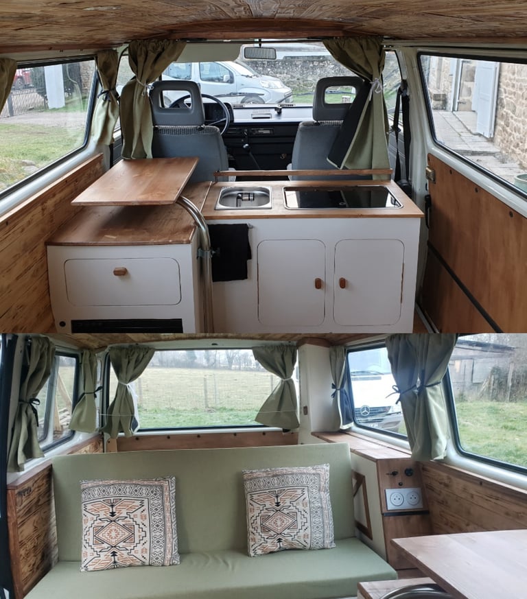 Cette rénovation complète a véritablement transformé ce combi Volkswagen en un espace polyvalent et confortable pour des aventures inoubliables !